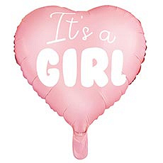 Фольгированный шар в виде сердца. Розового цвета с белой надписью IT'S A GIRL. Может надуваться как гелием, так и воздухом. Размер шара указан в надутом виде.