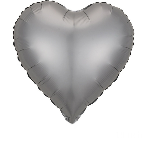Шар (18"/46 см) Сердце, Сатин, Серебро, 1 шт.