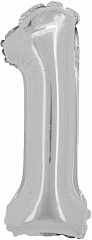 Шар (16"/41 см) Цифра 1, Серебро, 1 шт.