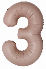 Ф Шар (40''/102 см) Цифра, 3 Slim, Винтажная роза, Матовый, 1 шт.