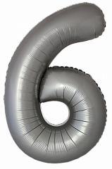 Ф Шар (40''/102 см) Цифра, 6 Slim, Лунное Серебро, Матовый, 1 шт.