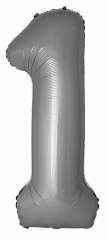 Ф Шар (40''/102 см) Цифра, 1 Slim, Лунное Серебро, Матовый, 1 шт.