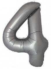 Ф Шар (40''/102 см) Цифра, 4 Slim, Лунное Серебро, Матовый, 1 шт.