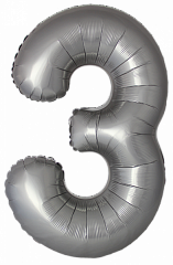 Ф Шар (40''/102 см) Цифра, 3 Slim, Лунное Серебро, Матовый, 1 шт.