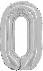 Шар (16"/41 см) Цифра 0, Серебро, 1 шт.