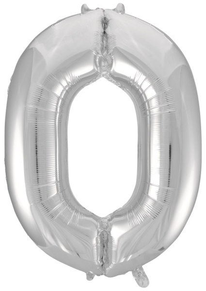 Шар (34"/86 см) Цифра 0, Серебро, 1 шт. в уп.