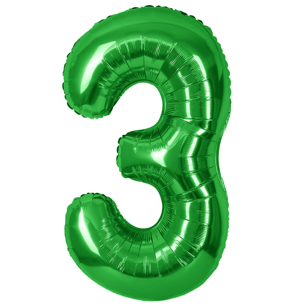 Шар (40"/102 см) Цифра 3, Зеленый, 1 шт. в уп.