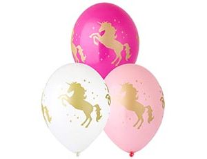 Высококачественный шар из натурального латекса. Пастель. Шары с четырехсторонним - круговая печать, шелкографическим рисунком золотой Единорог. Предназначен для розничной продажи воздушных шариков. Ассорти шаров из белых, светло и темно розовых цветов. Воздушные шары изготавливаются из экологически безопасного 100%-ного натурального латекса. В окружающей среде разлагаются на безопасные компоненты примерно с той-же скоростью, как обычные листья деревьев. После использования лопнуть и утилизировать как бытовой отход.