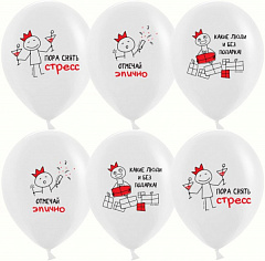Воздушный шар (12''/30 см) Позитивный юмор, Никогда не сдавайся, Белый, пастель, 1 ст, 25 шт.