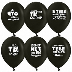 Оригинальные фразы вызовут улыбку у виновника торжества, подарят отличное настроение в любой праздник. Набор воздушных шаров может быть использован при оформлении праздника для детей и подростков.