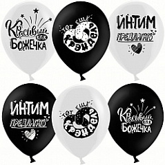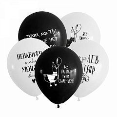 Шар (12''/30 см) Креативный юмор, Белый/Черный, пастель, 2 ст, 25 шт.
