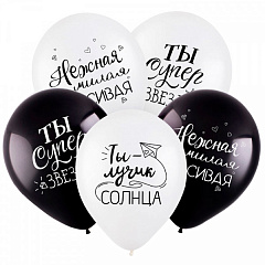 Надписи на воздушных шарах: "Ты лучик солнца", "Нежная, милая, красивая", "Ты супер звезда".
