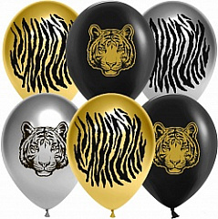Воздушный шар (12''/30 см) Благородный тигр, Ассорти, хром, 2 ст, 25 шт.