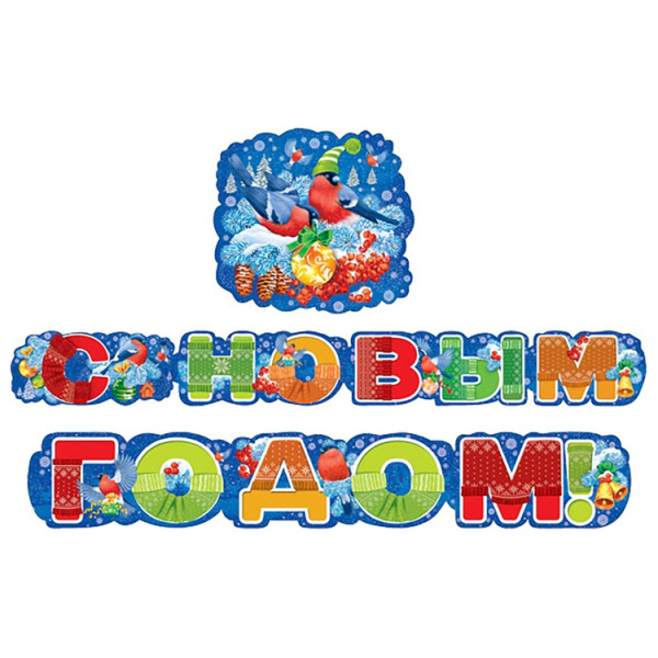 Гирлянда, С Новым Годом! Снегири, 180 см, 1 уп.