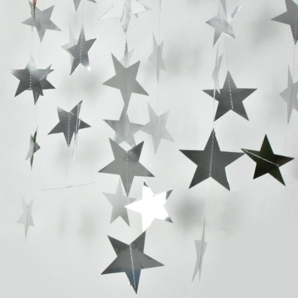 Гирлянда-подвеска Звезда, Серебро, Металлик, 200 см, 7 см*20 шт, 1 уп.