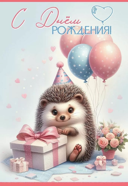 Открытка, С Днем Рождения! (ежик с подарком), с блестками, 12,2*18,2 см, 1 шт.