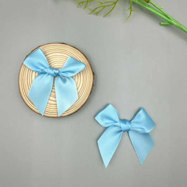 Бантики из атласной ленты, ширина ленты  2,5 см, размер бантика 7*7 см.