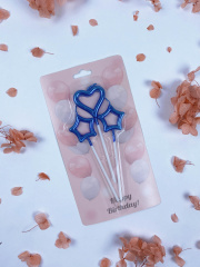Набор свечей Фигура, Звезды и Сердце, Синий, 11 см, 3 шт. с держат.