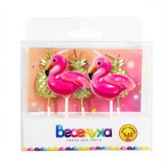 Набор свечей Фигура, Фламинго и Ананас, Розовый, 6 см, 5 шт. с держат.