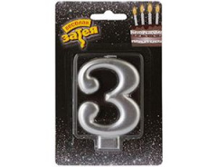 Свеча -цифра "3" Серебряная 8см/V