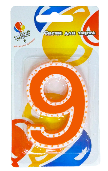 Свеча Цифра 9 в белой окантовке