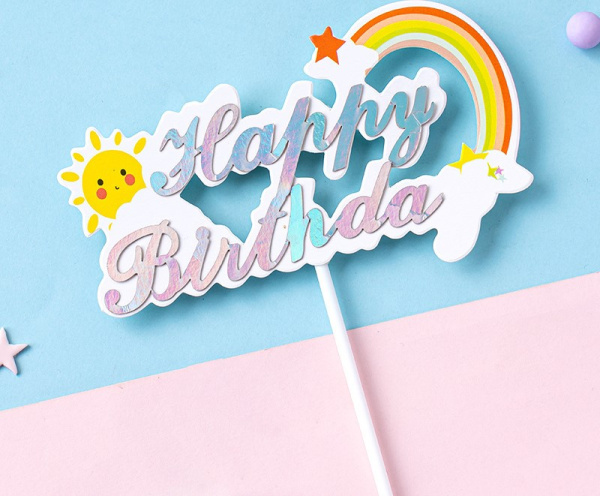 Топпер, Голография, HAPPY BIRTHDAY, 1 шт.