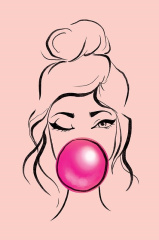 ---Открытка, Девушка, Розовый, с блестками, 12,1*18,3 см, 1 шт.